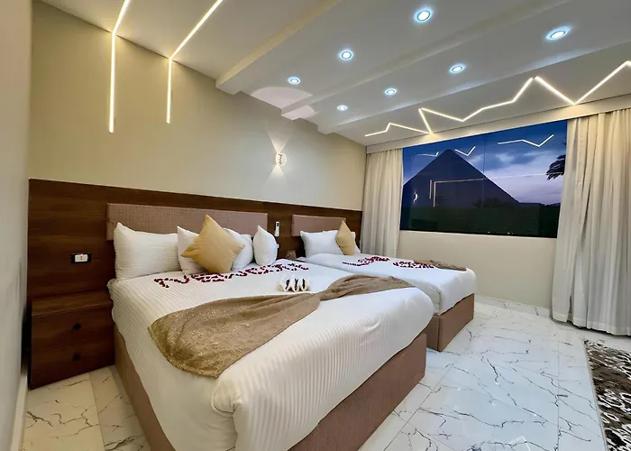 Situado bastante cerca de la Esfinge, este hotel de 3 estrellas también ofrece fácil acceso al Templo del Valle de Kefrén. Los huéspedes pueden visitar el Musée de la Barque Solaire, que está a 15 minutos a pie del hotel Sands Middle Pyramids View. Explora los lugares de interés históricos del Cairo, empezando por la Pirámide de Kefrén, situado a 2 km.